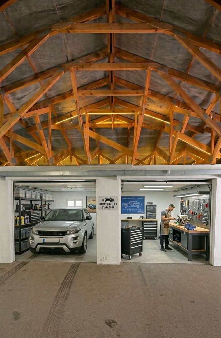 * kombinácia parkovania a dielne