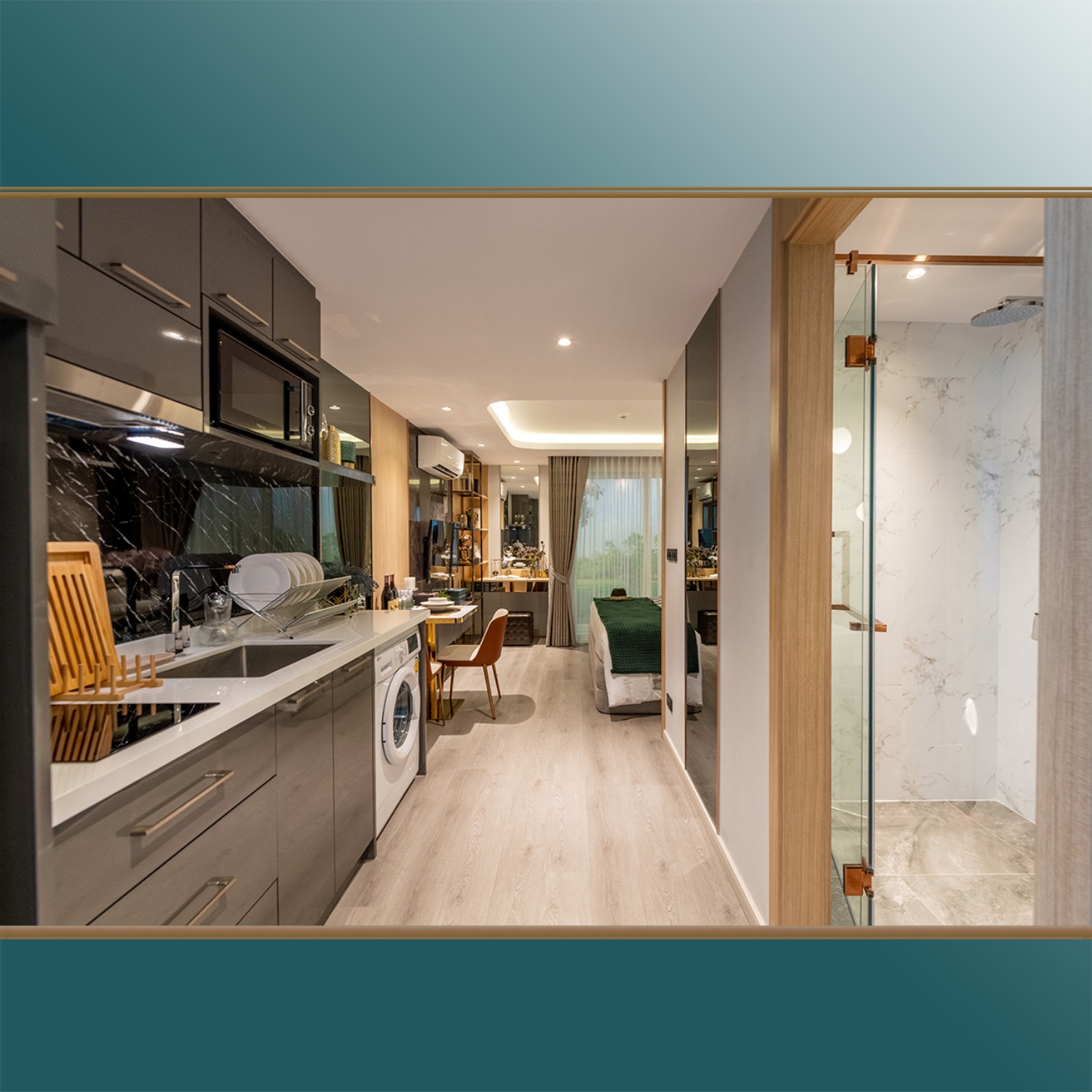 Poznámka: vo fotogalérii sú spolu fotky aj 1 aj 2 izbových apartmánov, fotky s modrým pozadím sú reálne nafotené v showroom v TH - tak budú apartmány zariadené a je to súčasť kúpnej ceny :-) Pridali sme Vám tam zopár záberov z TH a obľúbených jedál thajskej kuchyne :-)