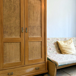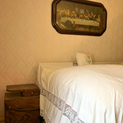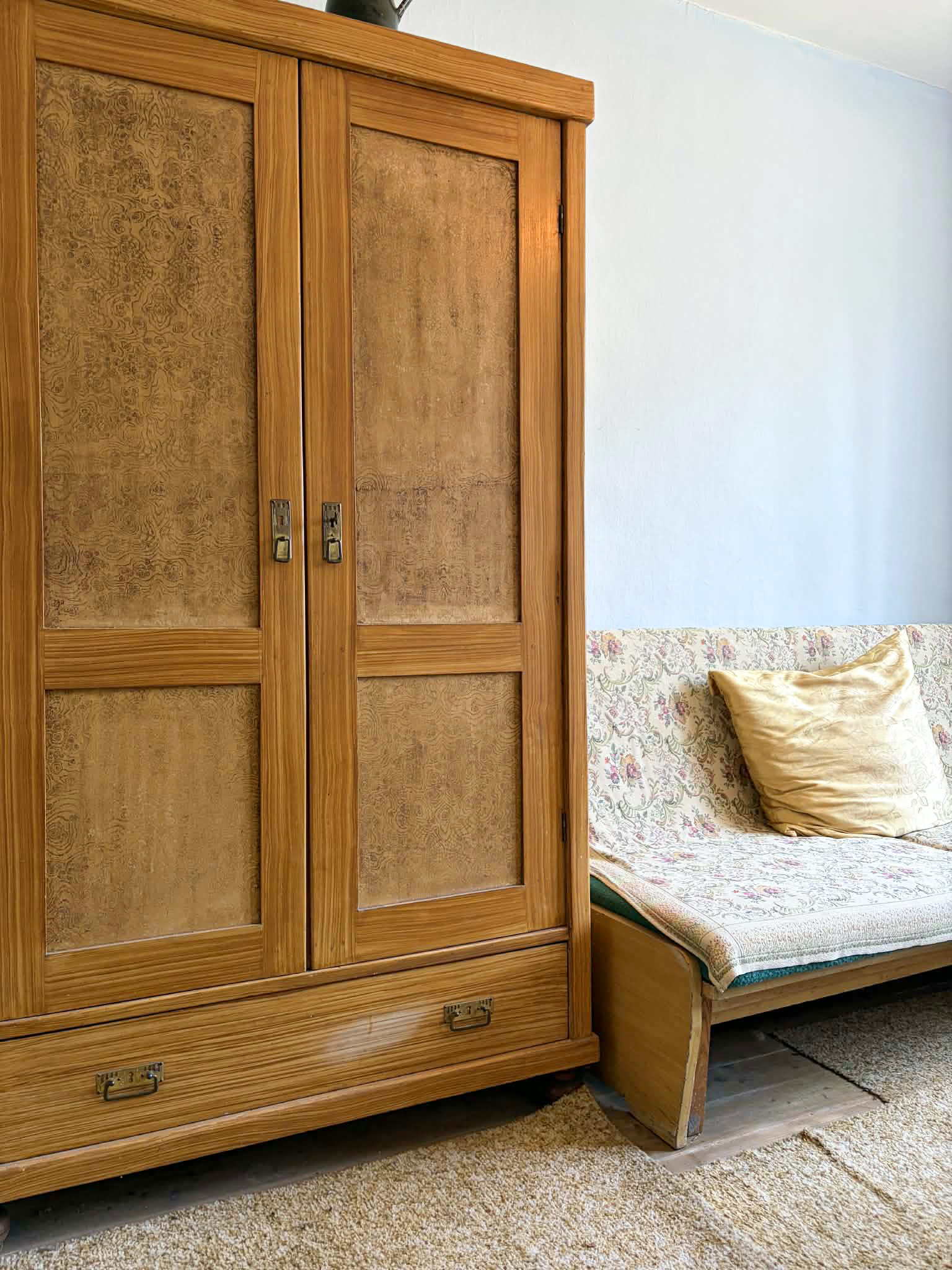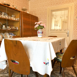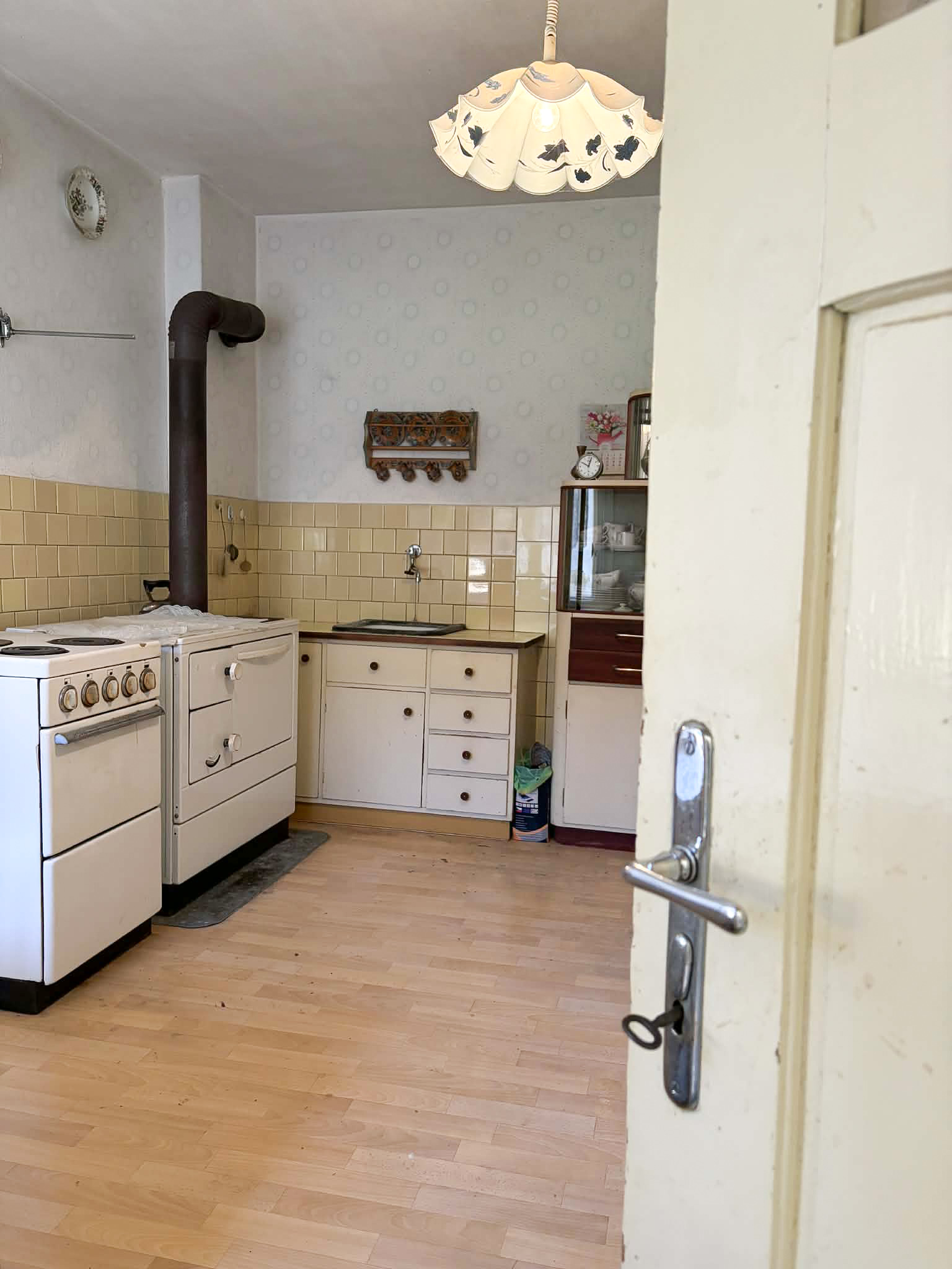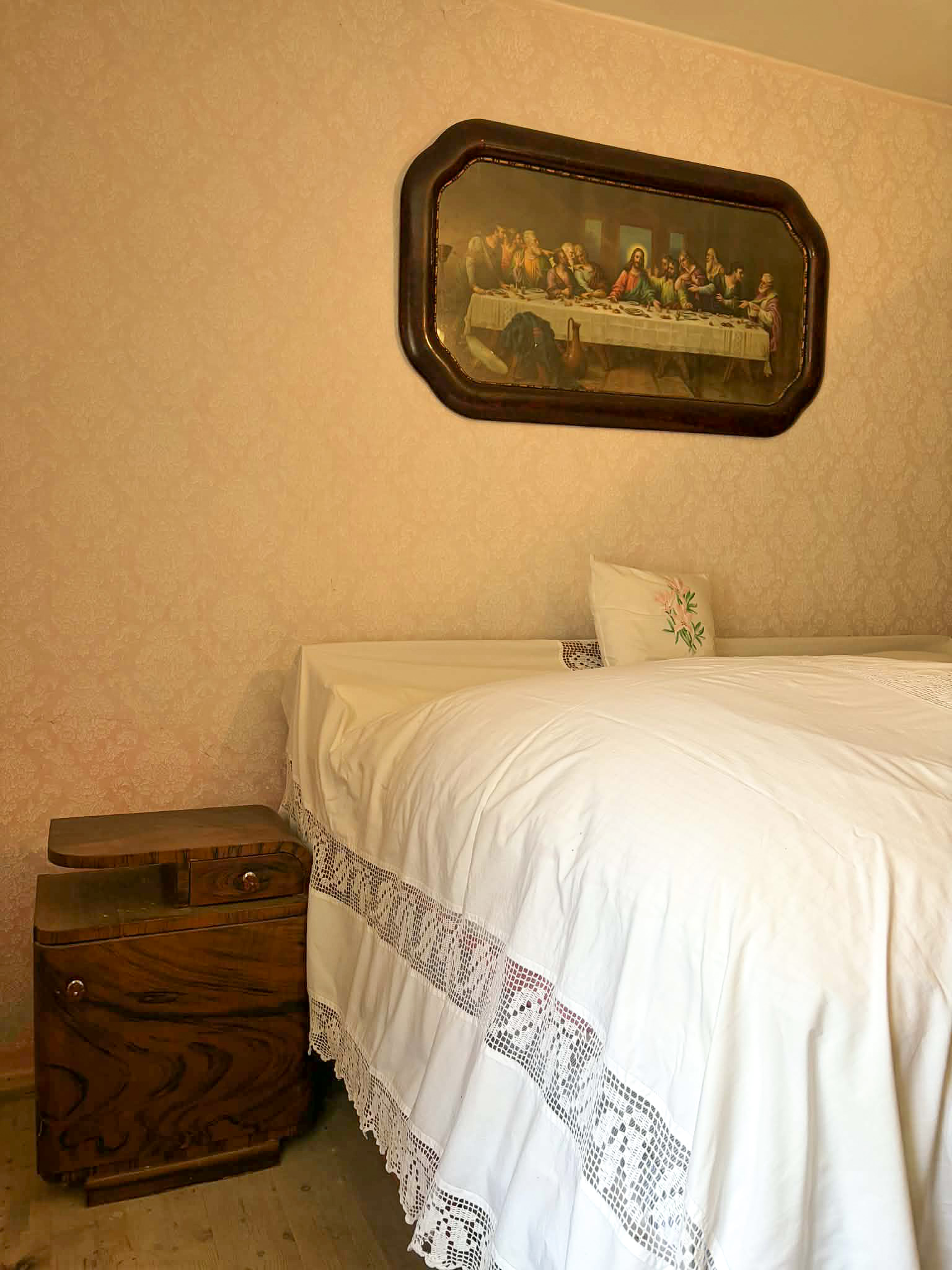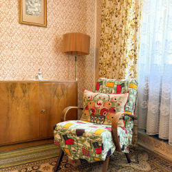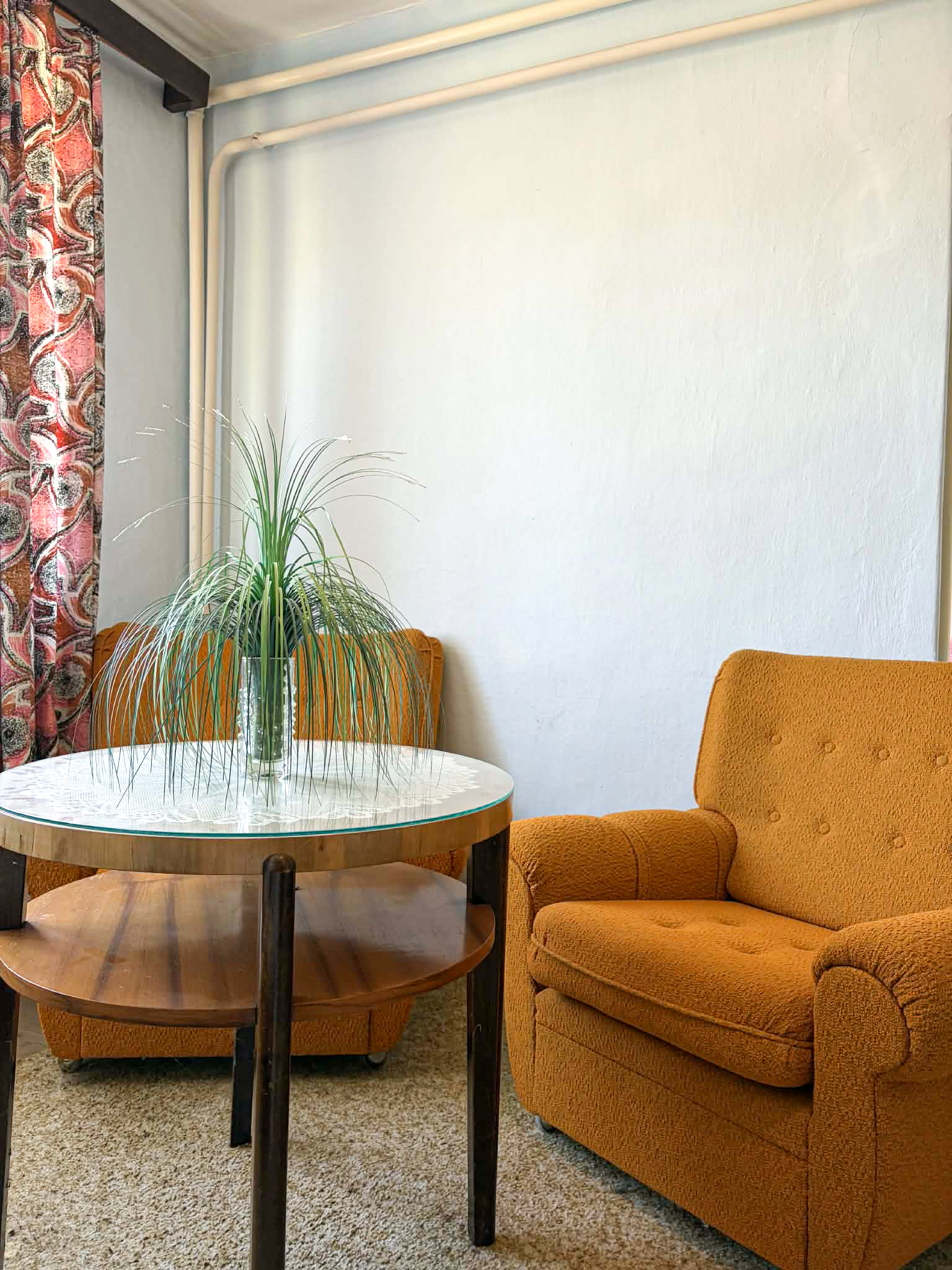 Interiér pôsobí veľmi autenticky – drevené prvky, pôvodné dvere a detaily vytvárajú atmosféru, ktorú v novostavbách nenájdete.